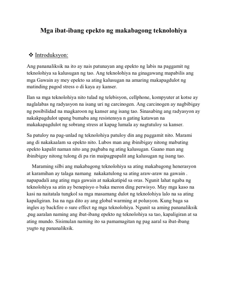 EPEKTO NG TEKNOLOHIYA SA PAG-AARAL NG MGA MAG-AARAL Isang reserts report na iniharap sa mga dalubguro bilang pangangailangan para sa asignaturang Fil109 ni DONALD COGO KOLEHIYO NG SKSU KALAMANSIG SULTAN KUDARAT ENERO 10 2014 KABANATA 1 PANIMULA Tungkulin ng mga kabataan ang mag-aral kapag ang mga kabataan ay napapagud na sa. Download dito upload don ML dito ROS don Fb dito Ig don. Ang mga pananaw na ito ay tama subalit kailangan.