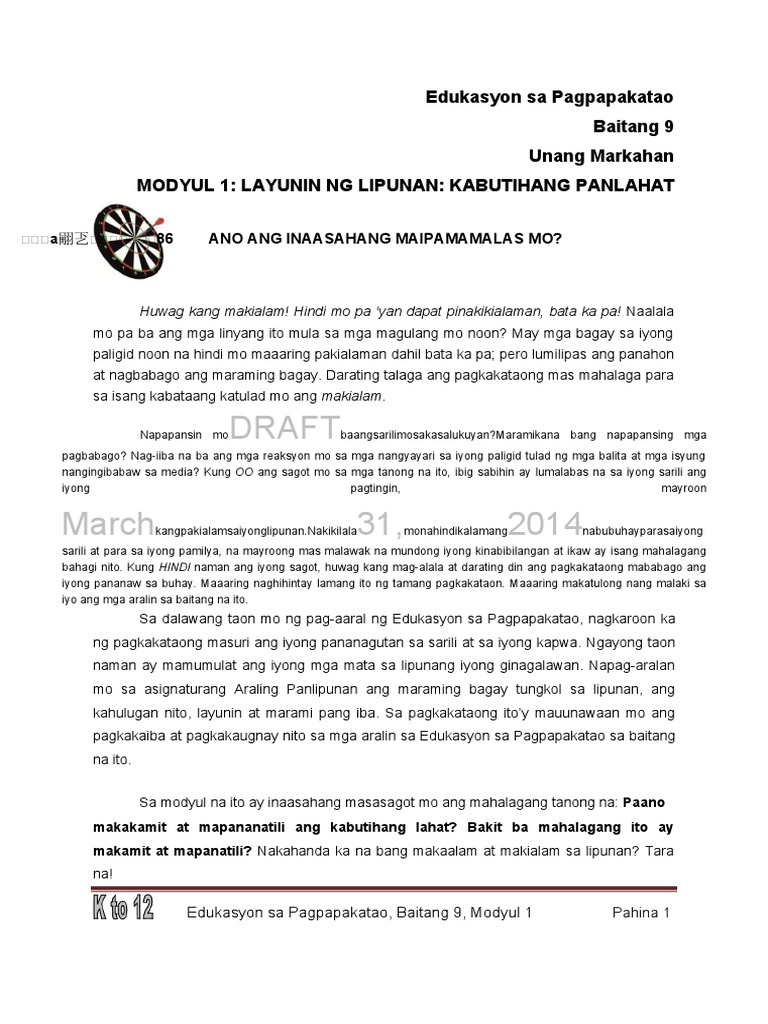 Edukasyon Sa Pagpapakatao Grade 9 Learner S Material