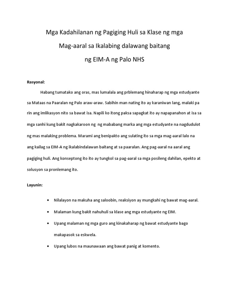 Doc Dahilan At Epekto Ng Pagiging Huling Ng Mga Estudyante Sa Paaralan Troy Mangaoang Academia Edu